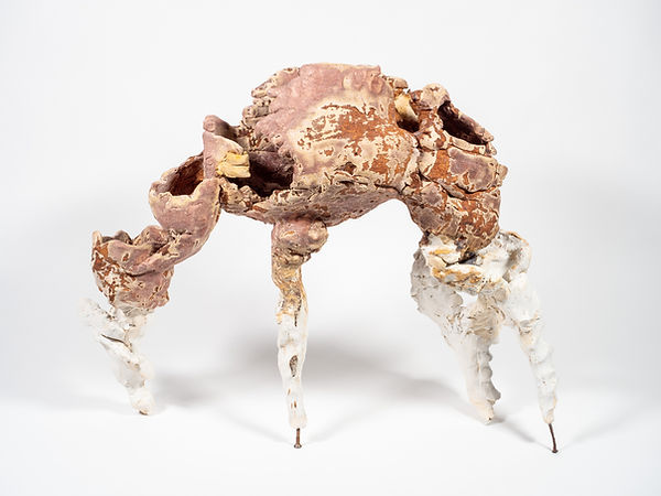 In this work, materials are layered, deconstructed, and built up again. The paintings on paper and broken sphere sculptures were created with the sense of immediacy and poignance of diary-like entries. Paint is scraped, carved into, layered onto the surface. Clay is molded leaving inedible marks suggesting the history of the object and the time it was made.